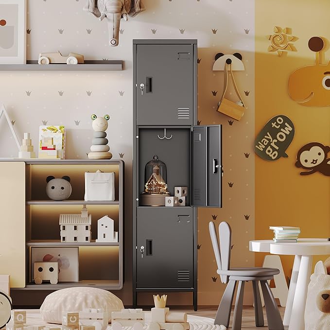 • Versatile Storage Option:Whether you need to organize books, sports equipment, office supplies, or personal belongings, this black metal locker's three - compartment design provides a flexible and efficient storage solution. Assembly is straightforward with clear instructions included, and maintenance is as simple as wiping down the smooth metal surface.