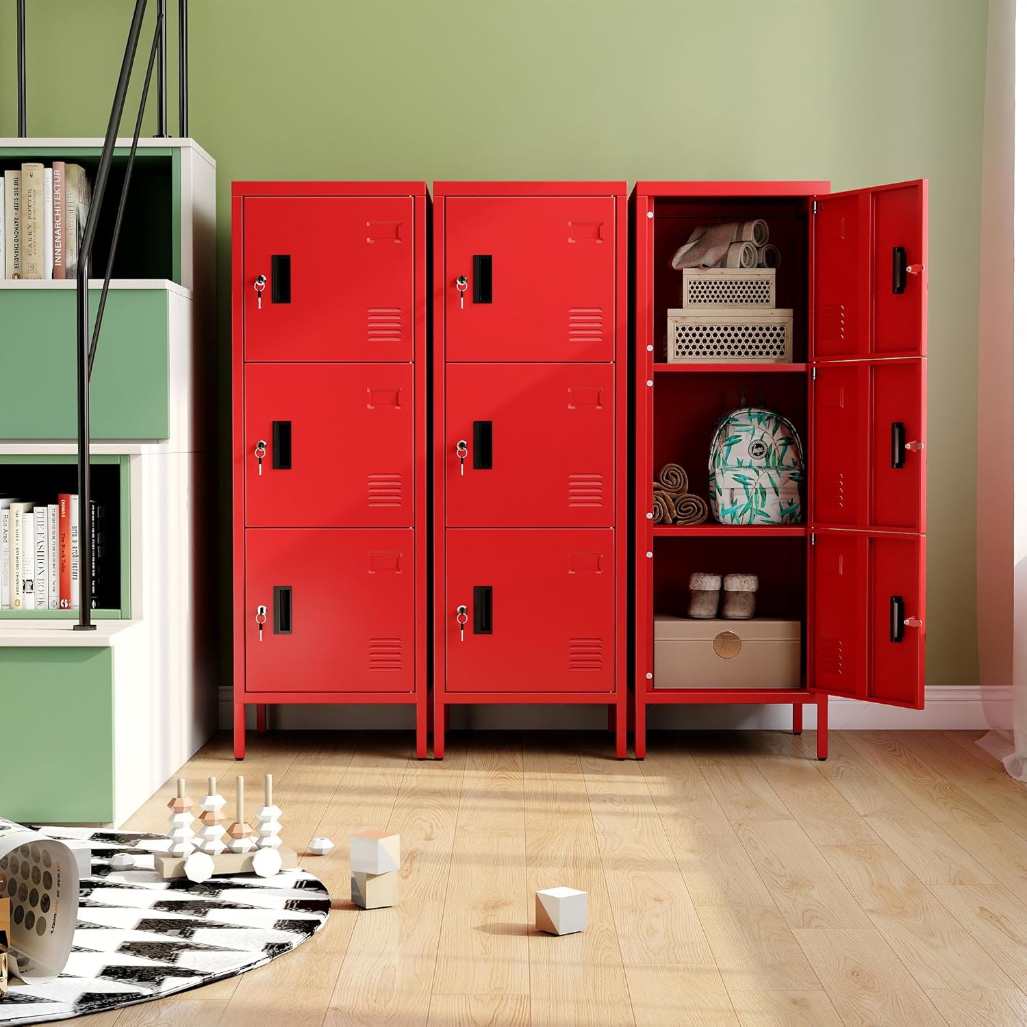 Metal Storage Locker with Ventilation Holes, Metal Storage Locker with Lock and Card Slof for Children Room, School, Office, Home,47.3" H x 15.8" W x 15.8" D,Assembly Required,Red