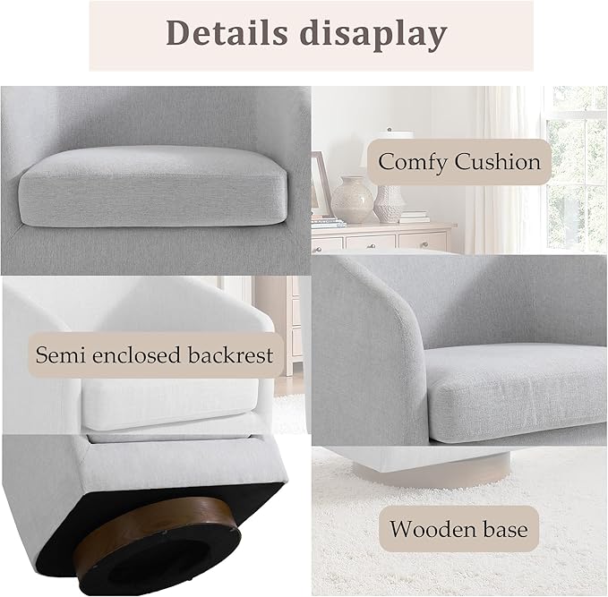• Chenille Fabric Club Chair - Our swivel barrel chairs are made from chenille fabric that feels soft and luxurious while ensuring good breathability. Built for Durability, A reinforced wood and metal base ensures a solid foundation.