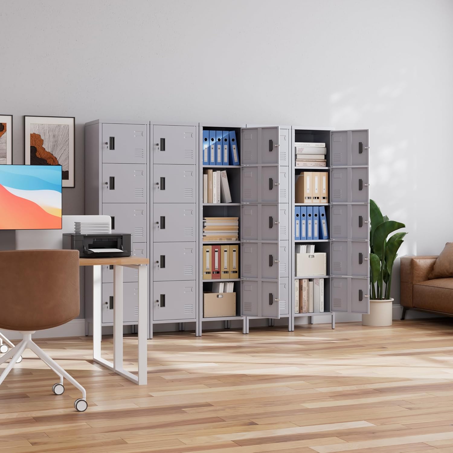 • 【Unique Design】Metal locker doors are equipped with ventilation holes,which help you keep items dry and ventilated,eliminating odor.business card slot can be labeled with each person's name for easy use.metal locker has legs, providing ample space underneath for easy cleaning.