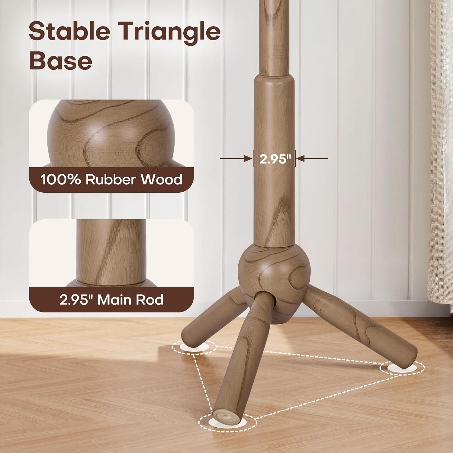 • 【100% SOLID RUBBERWOOD】Built from premium kiln-dried rubberwood this coat tree freestanding showcases clear natural grain, splinter-free edges for comfort feel every time you hang your coat. While walnut-colored friendly coating enhances both protection and aesthetics