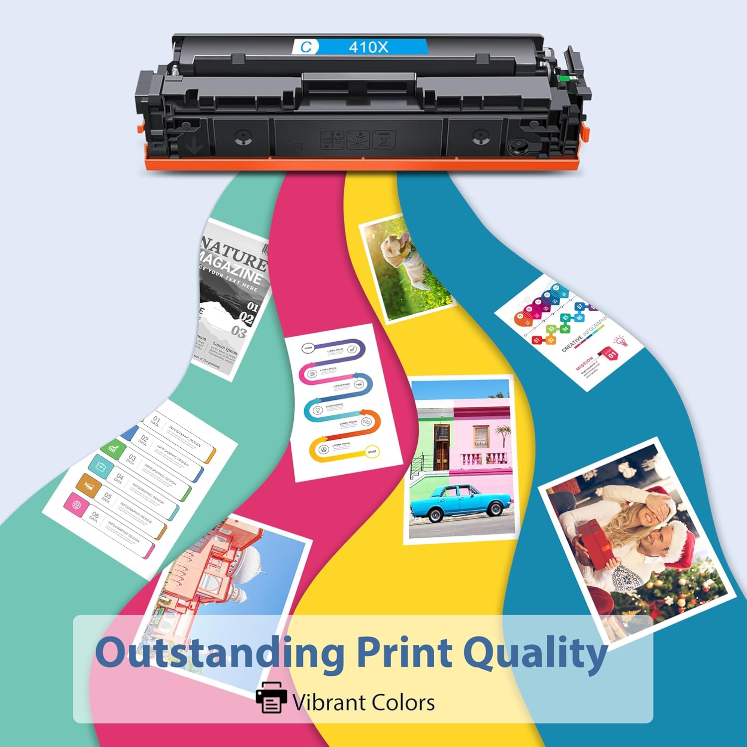 • Package Content:4 pack replacement for HP410X toner cartridge set (1 x CF410X black toner, 1 x CF411X cyan toner, 1 x CF412X yellow toner, 1 x CF413X magenta toner)