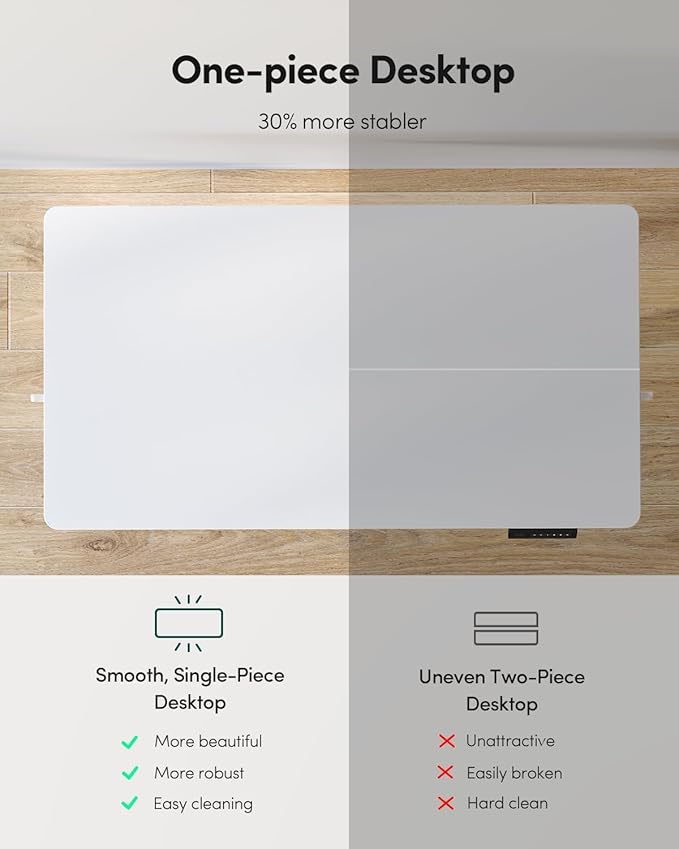 • Simplified Assembly: The Fezibo electric sit-stand desk includes detailed instructions for streamlined installation. One-piece desktop requires less steps than joined desktops to save time and effort. Please contact our support team if you have questions about assembly or product selection.