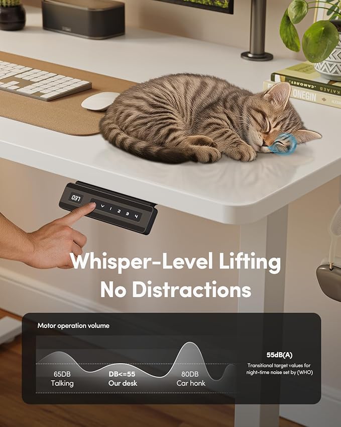 • 4 Memory Height Presets: The Fezibo Electric Standing desk features an intuitive LED controller for quiet operation. It allows you to save up to 4 custom height settings to seamlessly switch between your preferred heights, ensuring you have a focused, distraction-free workspace.