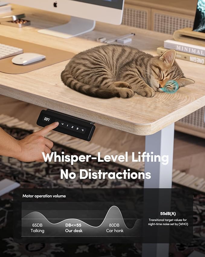 • 4 Memory Height Presets: The Fezibo Electric Standing desk features an intuitive LED controller for quiet operation. It allows you to save up to 4 custom height settings to seamlessly switch between your preferred heights, ensuring you have a focused, distraction-free workspace.