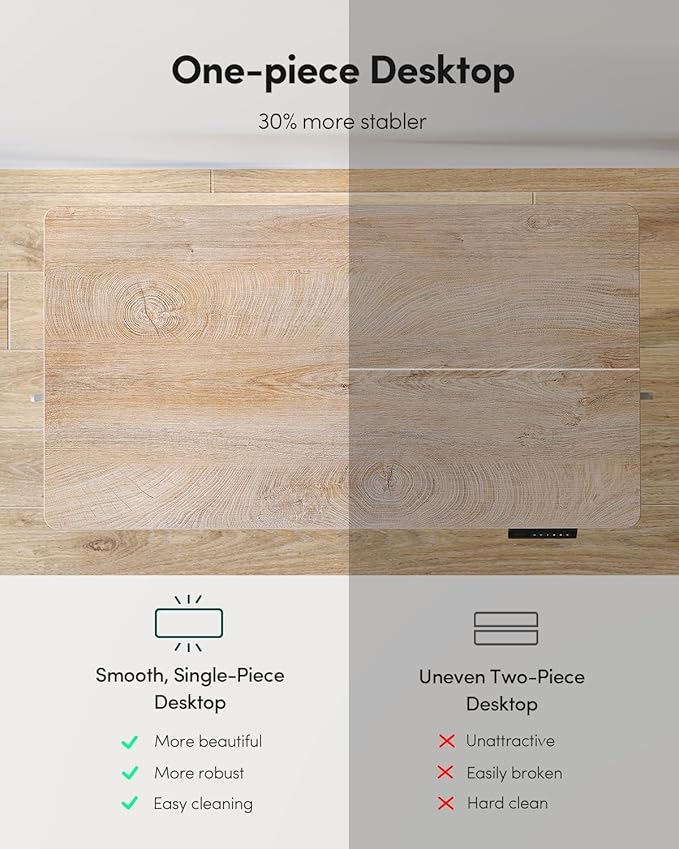 • Simplified Assembly: The Fezibo electric sit-stand desk includes detailed instructions for streamlined installation. One-piece desktop requires less steps than joined desktops to save time and effort. Please contact our support team if you have questions about assembly or product selection.