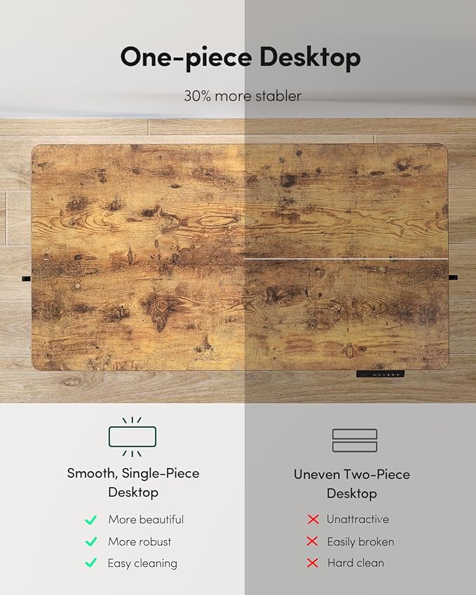 • Simplified Assembly: The Fezibo electric sit-stand desk includes detailed instructions for streamlined installation. One-piece desktop requires less steps than joined desktops to save time and effort. Please contact our support team if you have questions about assembly or product selection.