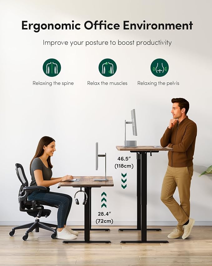 • Smooth Height Adjustment: Engineered to accommodate a wide range of users, the Fezibo standing desk features advanced 2-stage lifting columns. The adjustable standing desk allows you to work at a comfortable height between 28.35″ and 46.46″ tall, making it easily find and switch to their perfect sit-to-stand positions with minimal effort.