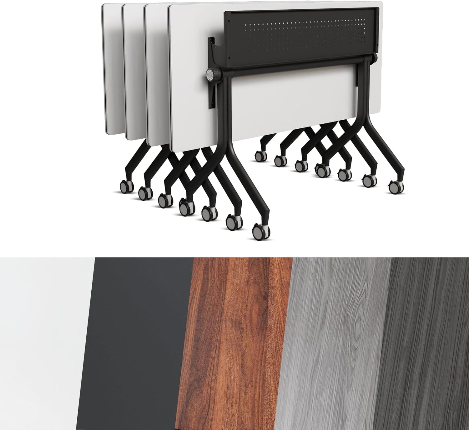 • Folding conference table: Folding design, you can quickly fold the table by just turning the knob. You can stack them together for storage to save storage space. Very suitable for commercial offices that often hold conferences and events