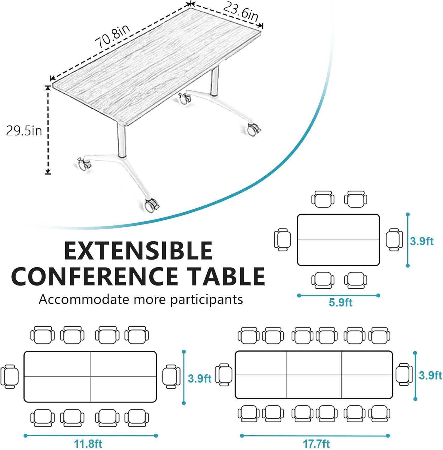 Conference Room Table, Folding Conference Tables,Thicken Grey Tabletop,Flip Top Wooden Seminar Meeting Room Table for Conference Room Offices (4, Black+White, 70.8”)