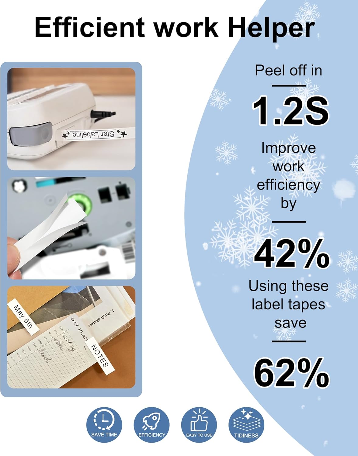 • Features : Label maker refill is Water Resistant,Chemical Resistant,Abrasion Resistant,Temperature Resistant,Fade Resistant.Print clear and long-lasting,split backing for easy peeling. No sticky residue remains when the labels are removed,make your things all be tidy and clean at a glance