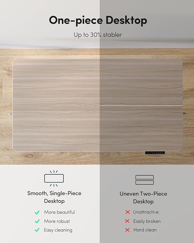 • Simplified Assembly: The Fezibo electric sit-stand desk includes detailed instructions for streamlined installation. One-piece desktop requires less steps than joined desktops to save time and effort. Please contact our support team if you have questions about assembly or product selection.