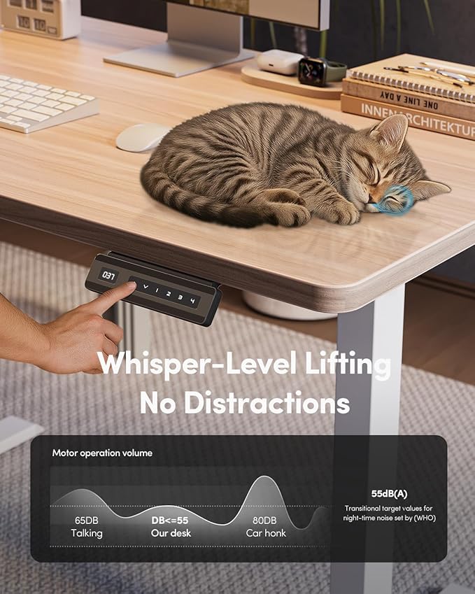 • 4 Memory Height Presets: The Fezibo Electric Standing desk features an intuitive LED controller for quiet operation. It allows you to save up to 4 custom height settings to seamlessly switch between your preferred heights, ensuring you have a focused, distraction-free workspace.