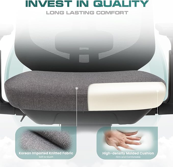 • ⏩ VENTILATED ERGONOMIC MESH OFFICE CHAIR--Adopting high-end breathable mesh fabric imported from Korea with great flexibility and durability, the high back office chair perfectly fits the curve of your spine and protects the cervical and lumbar spine. In addition, the lumbar support also offers well support for your back.