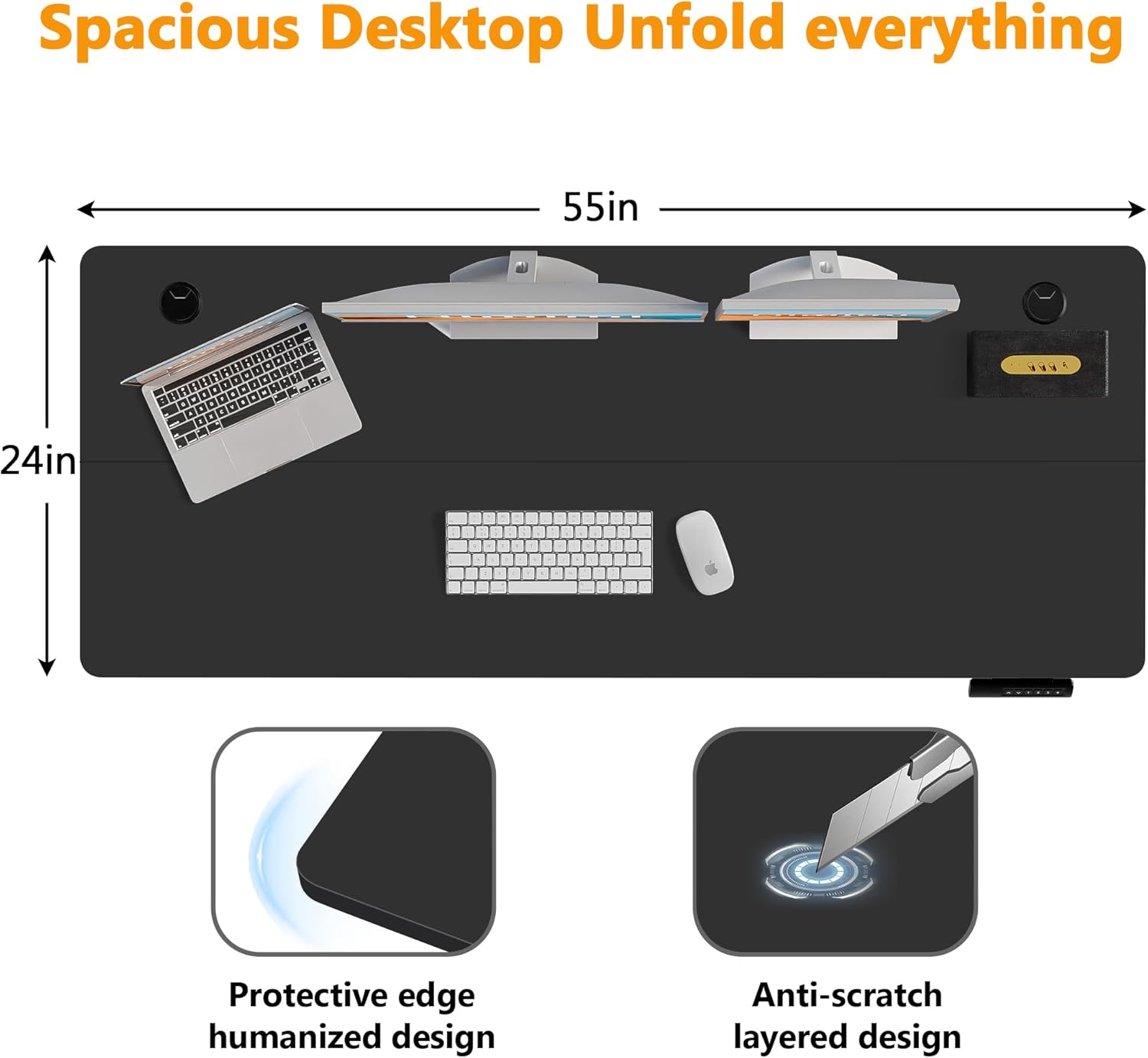 • 【Extra Large Workstation‌】– Boost productivity with our ‌55" L x 24" W‌ desktop, providing ample space for monitors, keyboards, and office essentials. Designed for professionals and gamers, this clutter-free desk ensures a smooth workflow for work, design, or gaming. Enjoy functionality and freedom in one versatile workspace