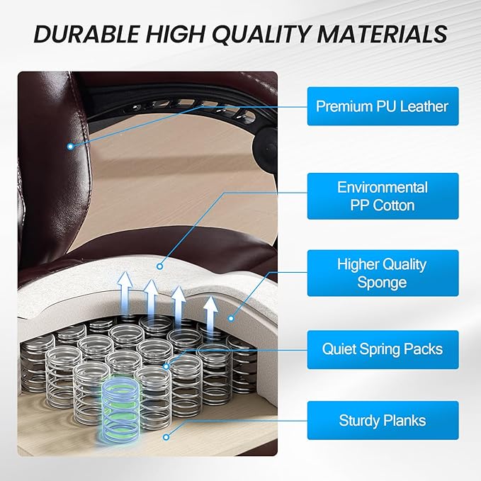 • Premium Comfort Executive Chair: Experience premium comfort and breathability. Features high-resilience foam cushioning wrapped in durable, easy-clean breathable PU leather. The thicker seat incorporates memory foam and high-resilience springs for lasting softness and support in this Executive Desk Chair