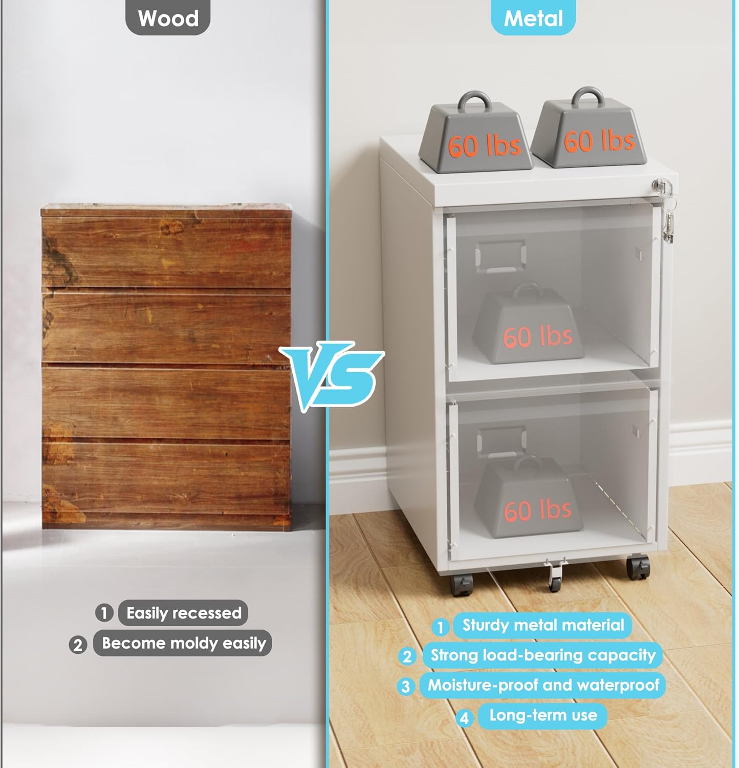 • 【Ease of Cleaning】Due to their metal surface,2 drawer file cabinets are easy to clean and maintain. They only require a damp cloth or cleaning agent to wipe them down.