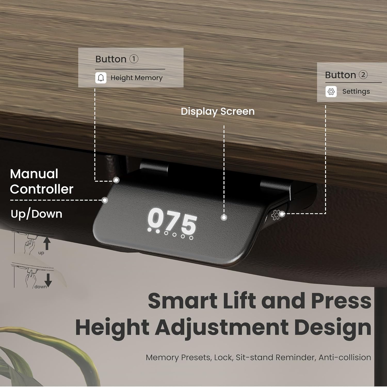 • Whisper-Quiet Dual-Motor Lift: The powerful dual-motor system operates smoothly and quietly under 50dB, lifting at 35mm/s. Adjust between 29.1"–47.6"with just a touch. Two memory presets with child lock allow quick sit-stand transitions while keeping your settings safe.