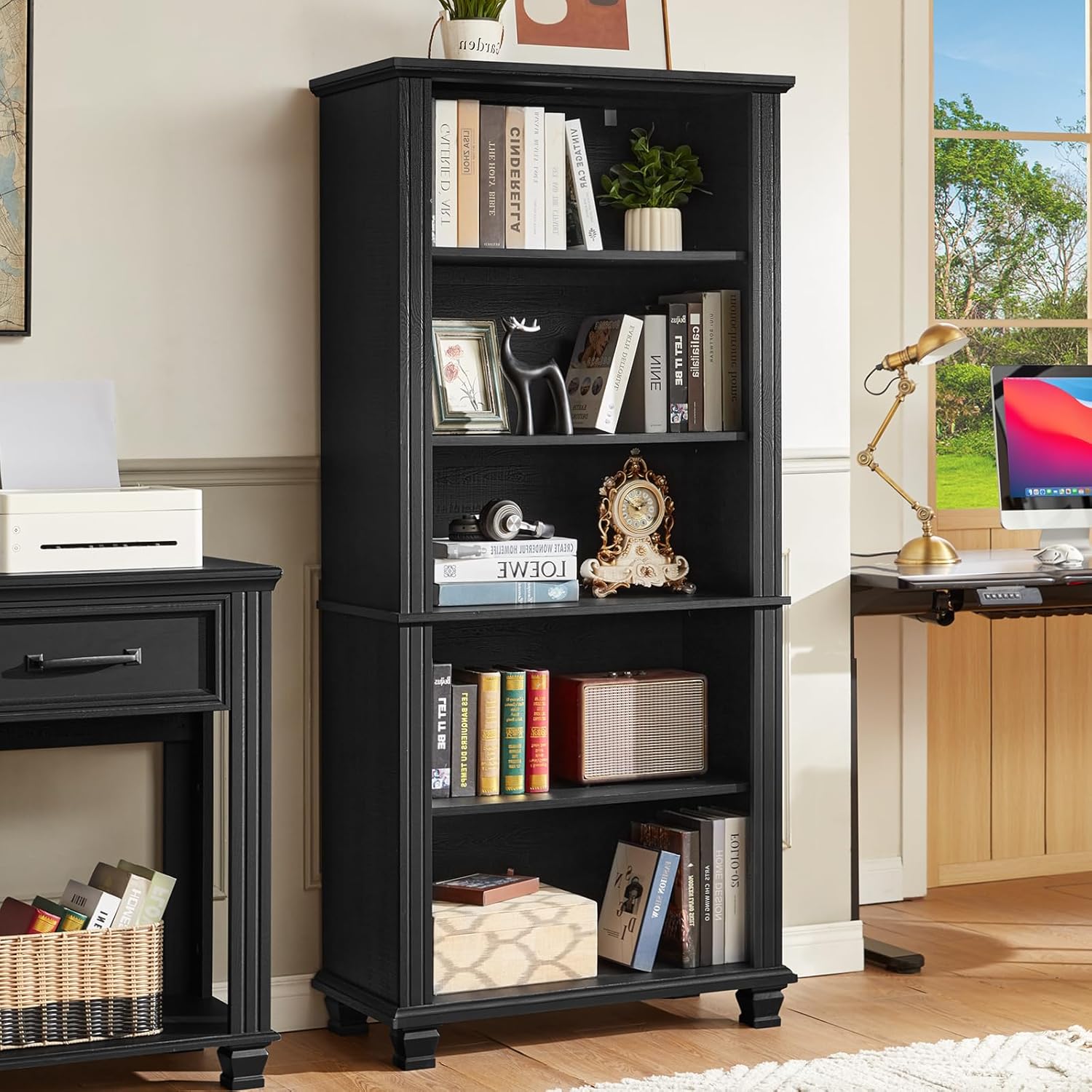 • [Rustic Style] This rustic bookshelf combines classic colors with modern linear design, which can be well integrated into rooms with different decorative styles, adding a touch of warmth to your space. You can also place this 5 - tier bookshelf in different locations as needed, such as the living room, office, study or library. This wooden bookshelf is available in four colors: walnut, black, white and green, providing you with a wide range of choices.